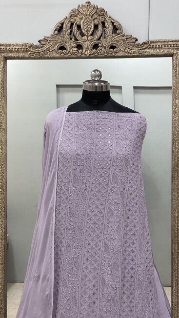 106 Chikan Mukaish Georgette Shirt and Dupatta Lilac