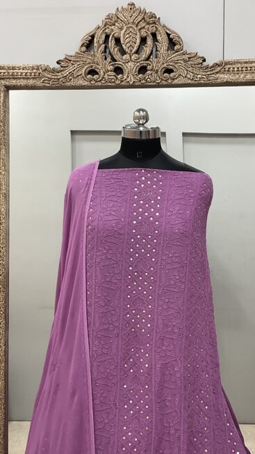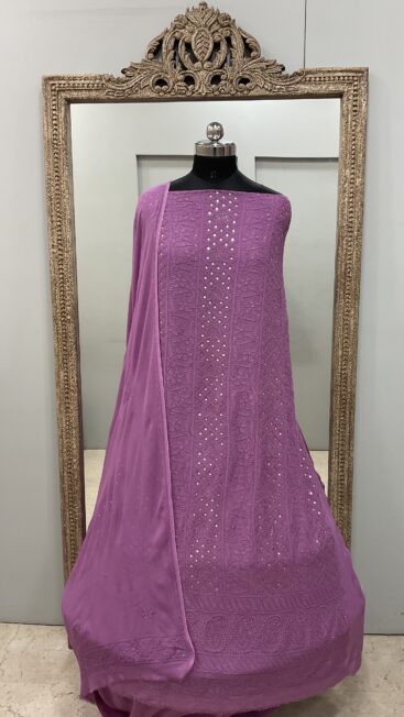 106 Chikan Mukaish Georgette Shirt and Dupatta Purple