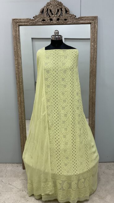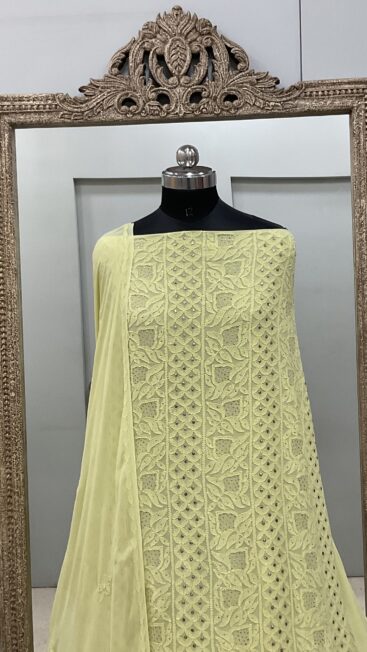 106 Chikan Mukaish Georgette Shirt and Dupatta Lemon Green
