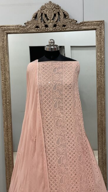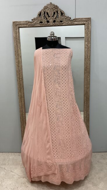 106 Chikan Mukaish Georgette Shirt and Dupatta Peach