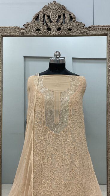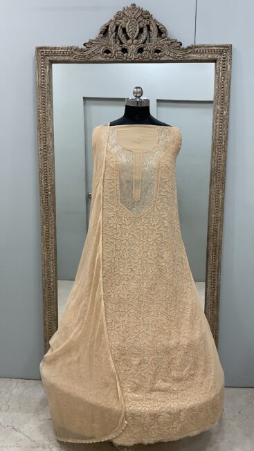 106 Chikan Mukaish Georgette Shirt and Dupatta Golden Beige