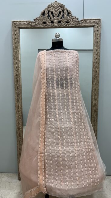 Pure Georgette Straight Front and Back Same Heavy Pearl and Sequence,Parsi Work Peach