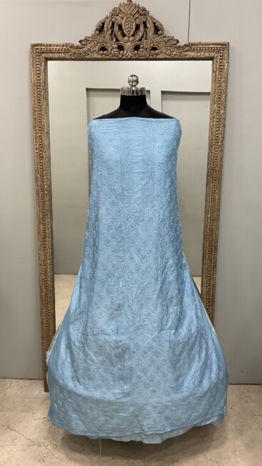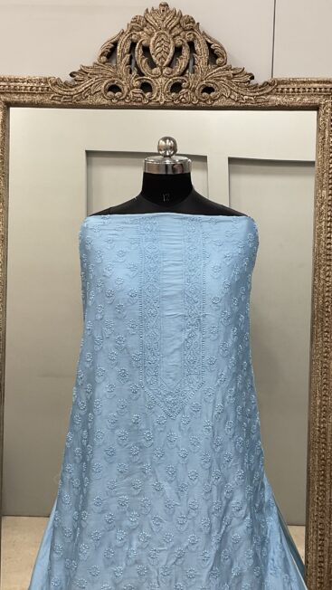 ₹5,500.00Gents Kurta Pure Chanderi Front Jaal and Back Booty with Normal Sleeves Blue -