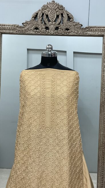 ₹5,500.00Gents Kurta Pure Chanderi Front Jaal and Back Booty with Normal Sleeves Beige -