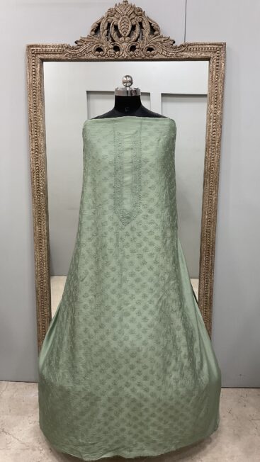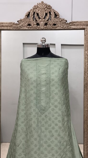 ₹5,500.00Gents Kurta Pure Chanderi Front Jaal and Back Booty with Normal Sleeves Pista Green -