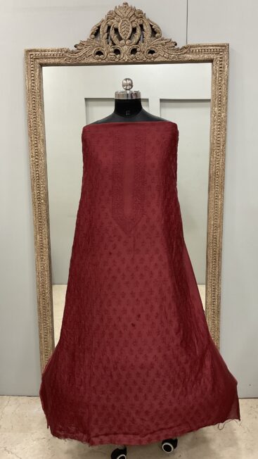 ₹5,500.00Gents Kurta Pure Chanderi Front Jaal and Back Booty with Normal Sleeves Red -