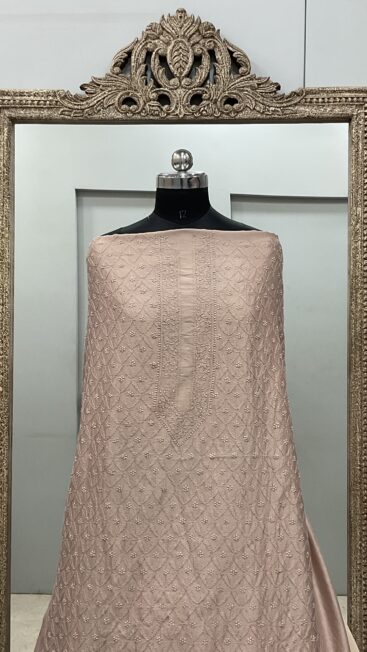₹5,500.00Gents Kurta Pure Chanderi Front Jaal and Back Booty with Normal Sleeves Peach -