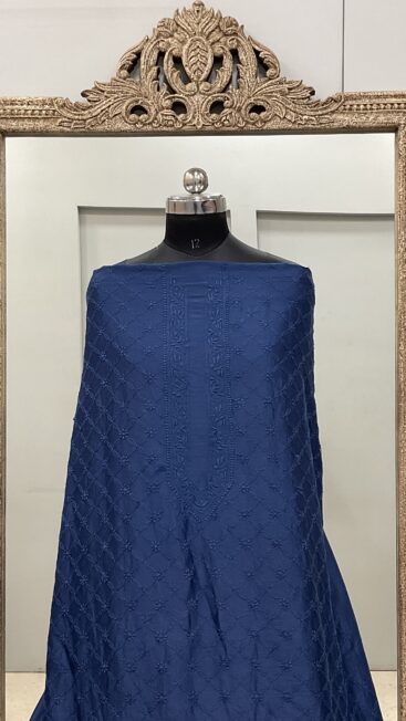₹5,500.00Gents Kurta Pure Chanderi Front Jaal and Back Booty with Normal Sleeves Navy Blue -