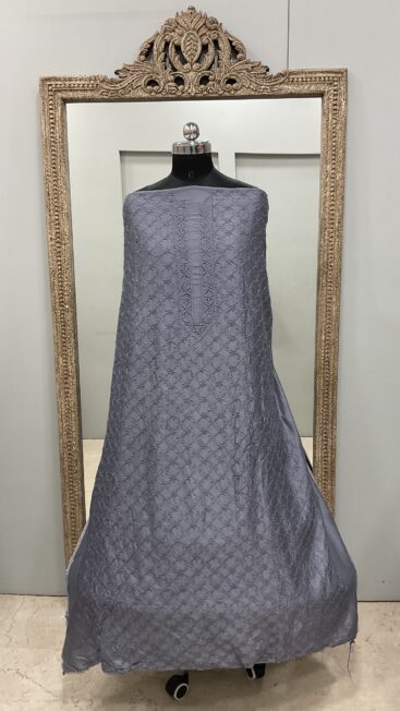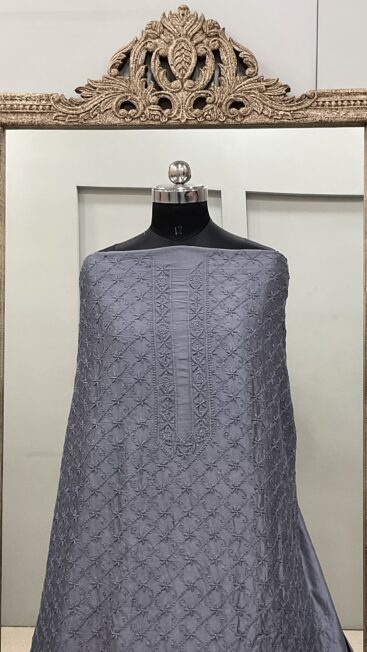 ₹5,500.00Gents Kurta Pure Chanderi Front Jaal and Back Booty with Normal Sleeves Gray -