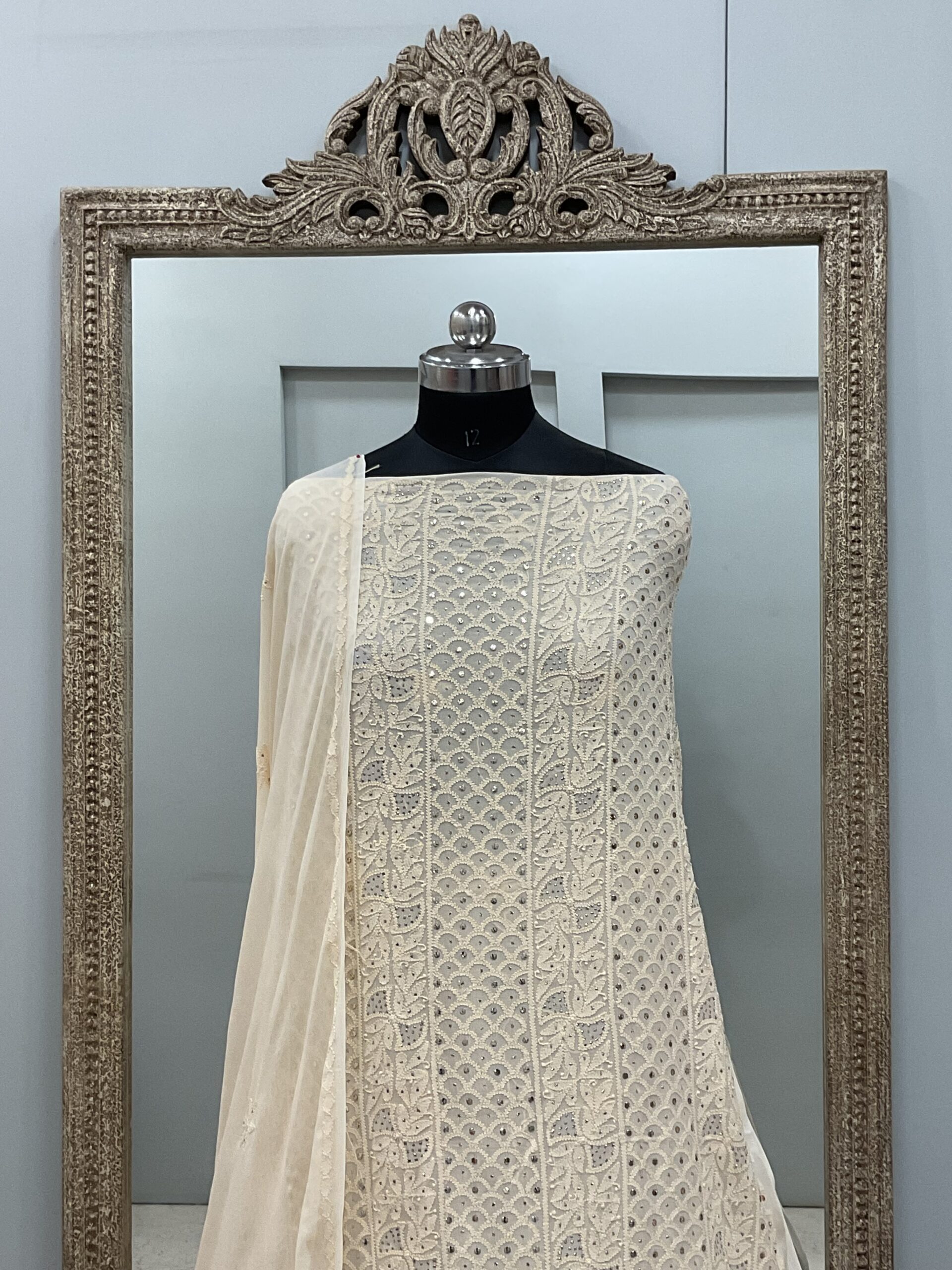Be the first to review “106 Chikan Mukaish Georgette Shirt and Dupatta Powder Beige”