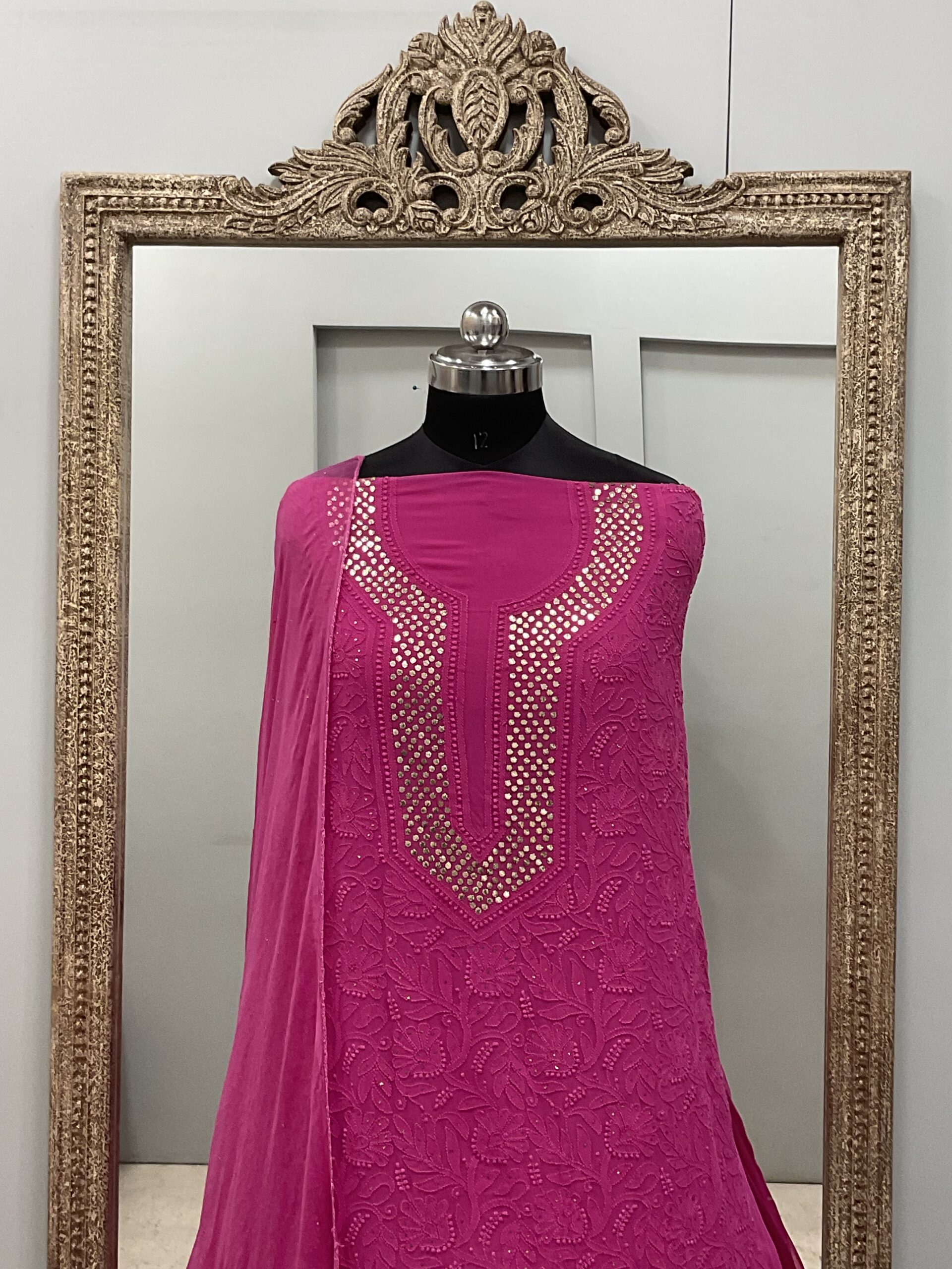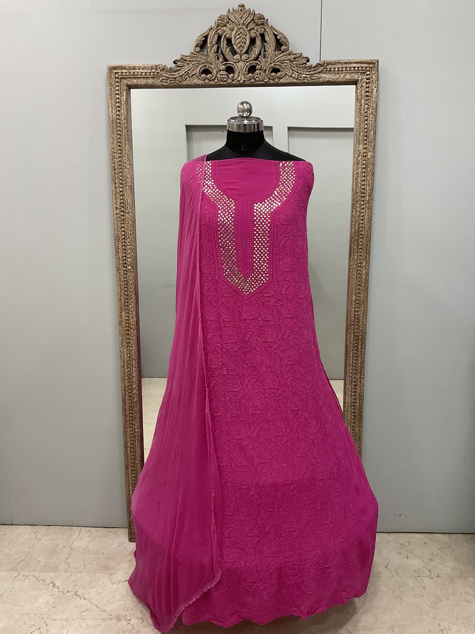 Be the first to review “Chikan Mukaish Georgette Shirt and Dupatta Pink”
