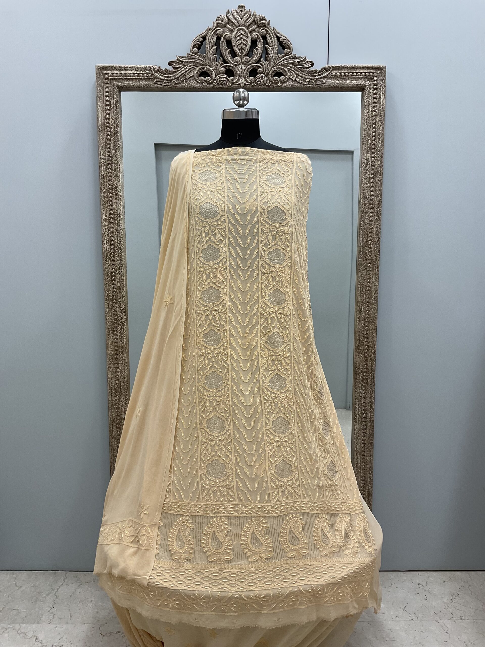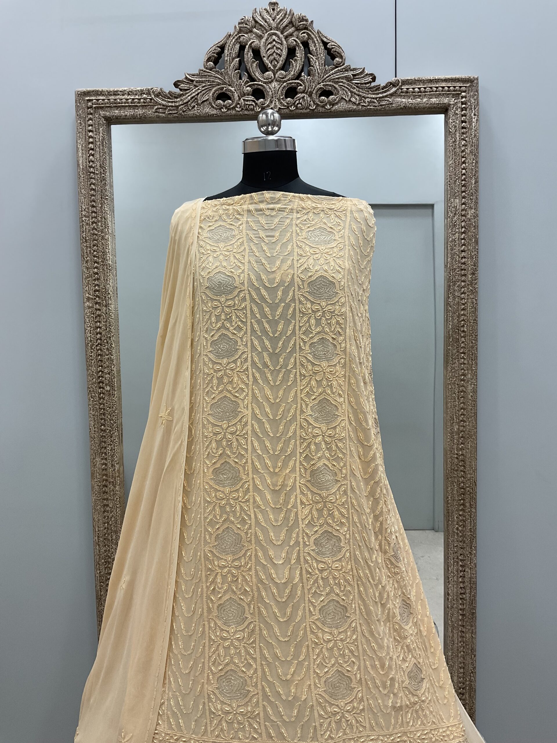 Be the first to review “Colored Pearl Georgette Shirt With Dupatta Powder Beige”