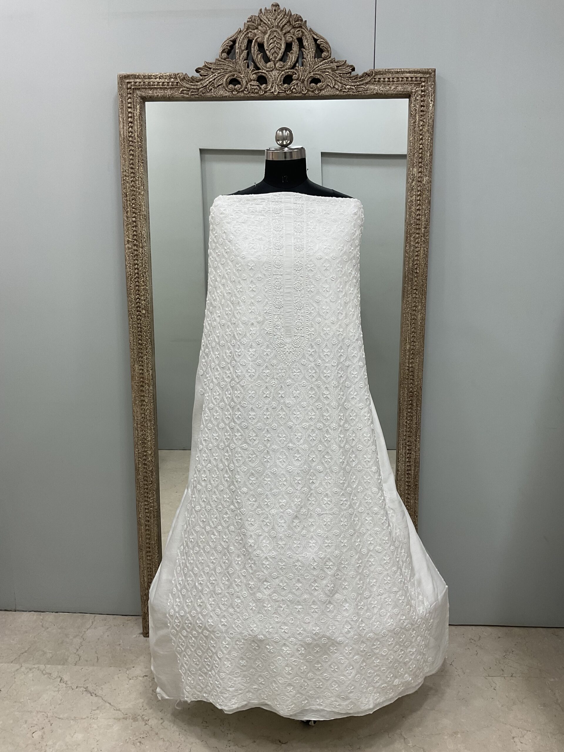 Gents Kurta Heavy Cutdana and Pearl Pure Chanderi Front Jaal and Back Booty with Normal Sleeves White 09