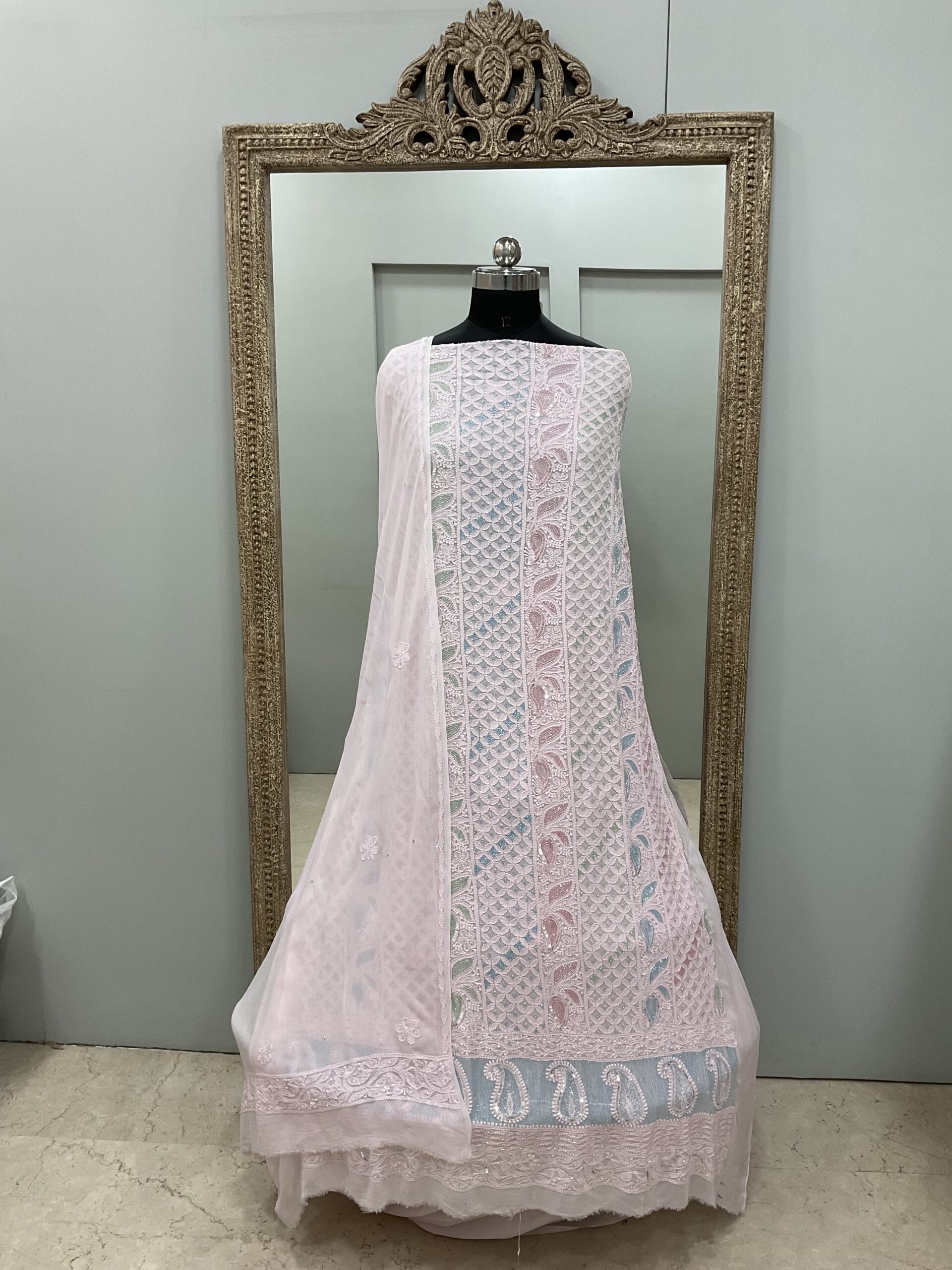 | Work | Multicolored Cutdana with Chickankari Embroidery |