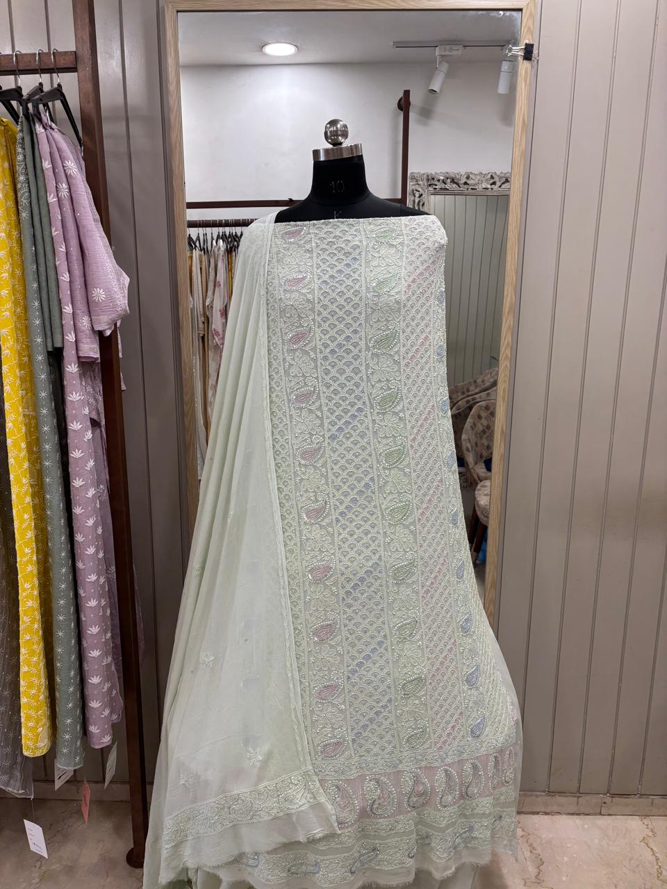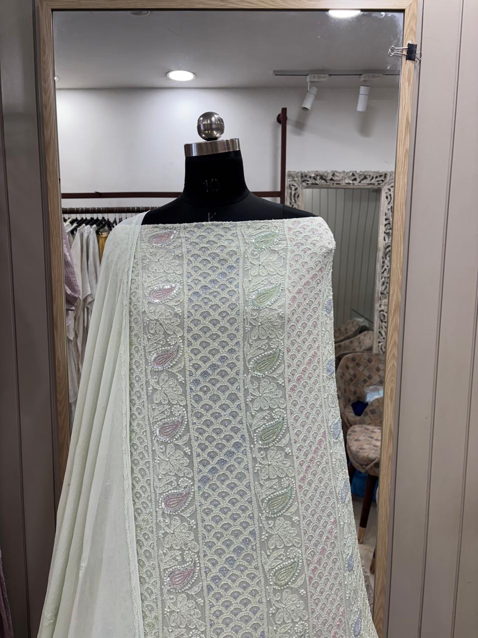 | Work | Multicolored Cutdana with Chickankari Embroidery |