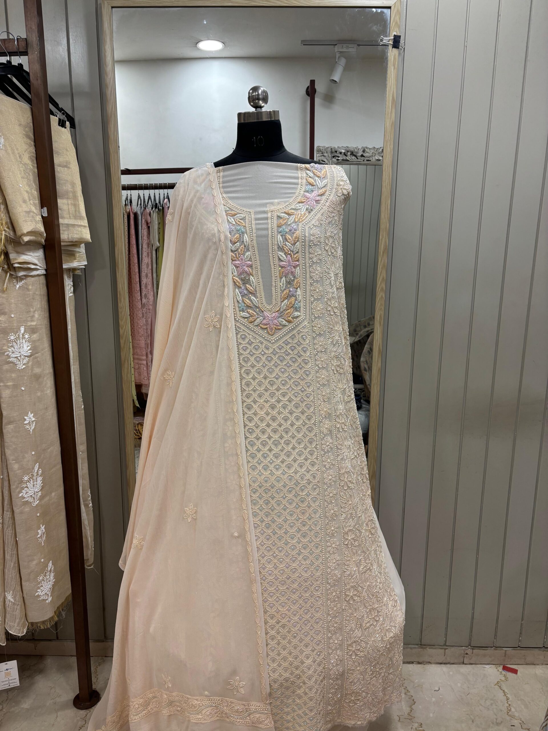Work  Parsi Gala and Cutdana  with Chickankari Embroidery