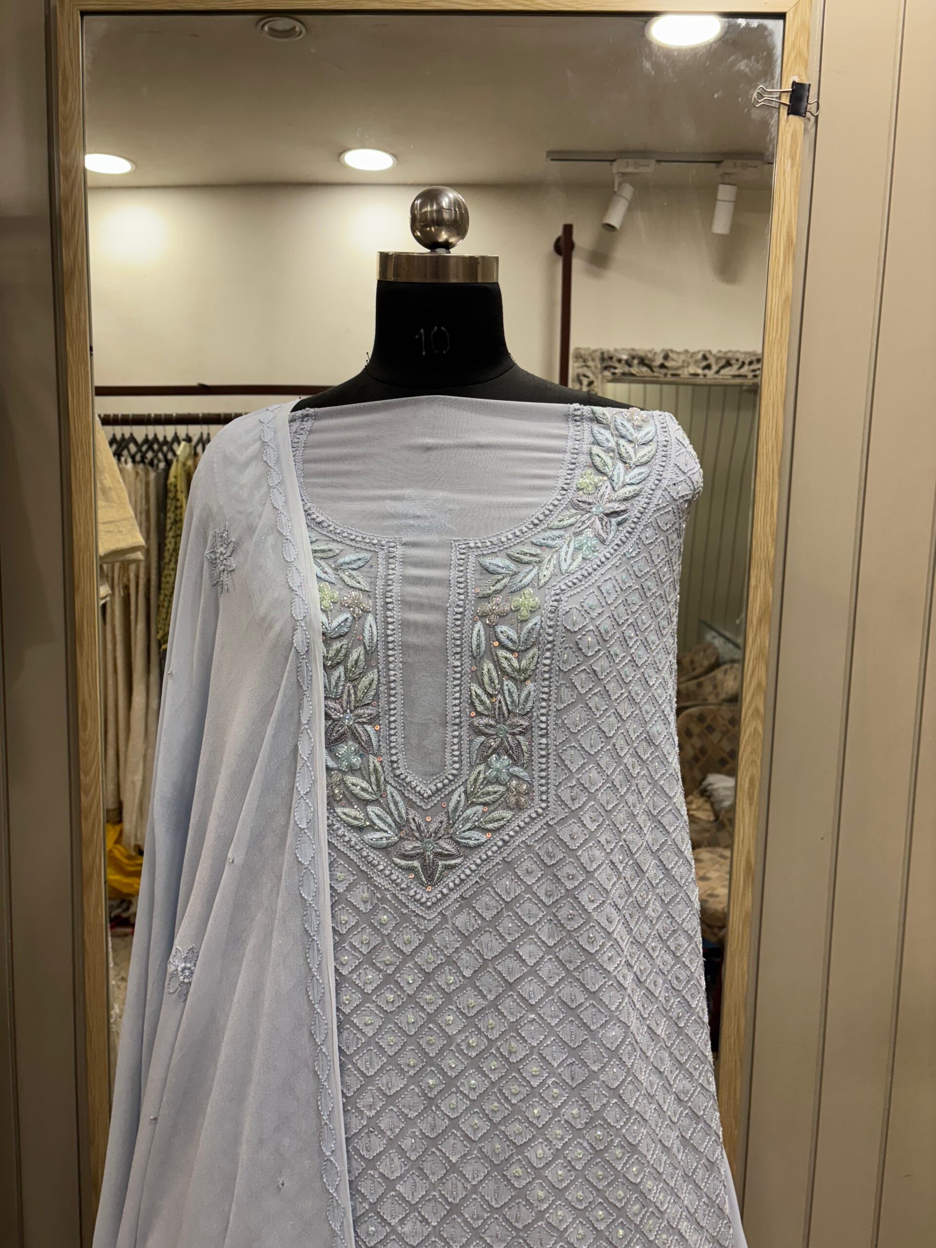 | Fabric Details | Shirt Length- 3.5 Meters | Dupatta Length- 2.5 Meter | Bottom -None | Lining -None |