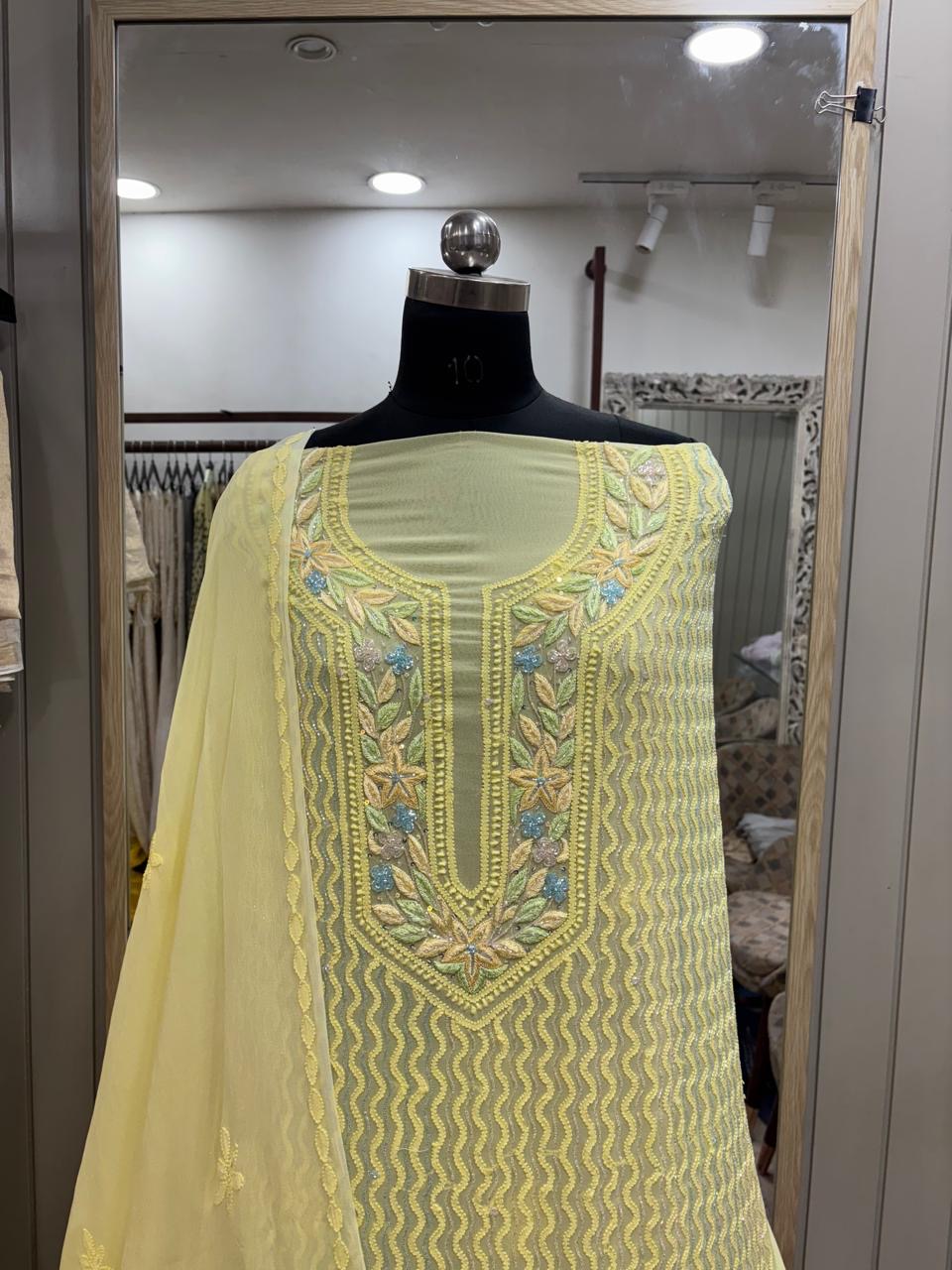 | Fabric Details | Shirt Length- 3.5 Meters | Dupatta Length- 2.5 Meter | Bottom -None | Lining -None |