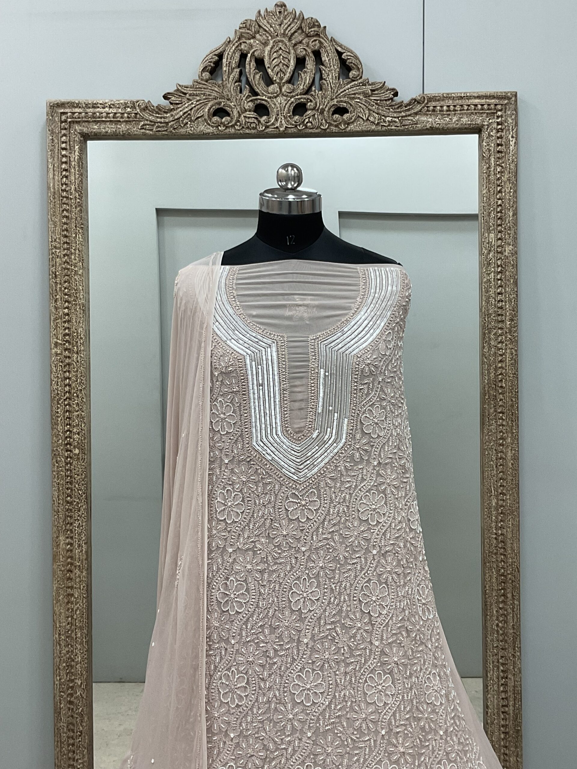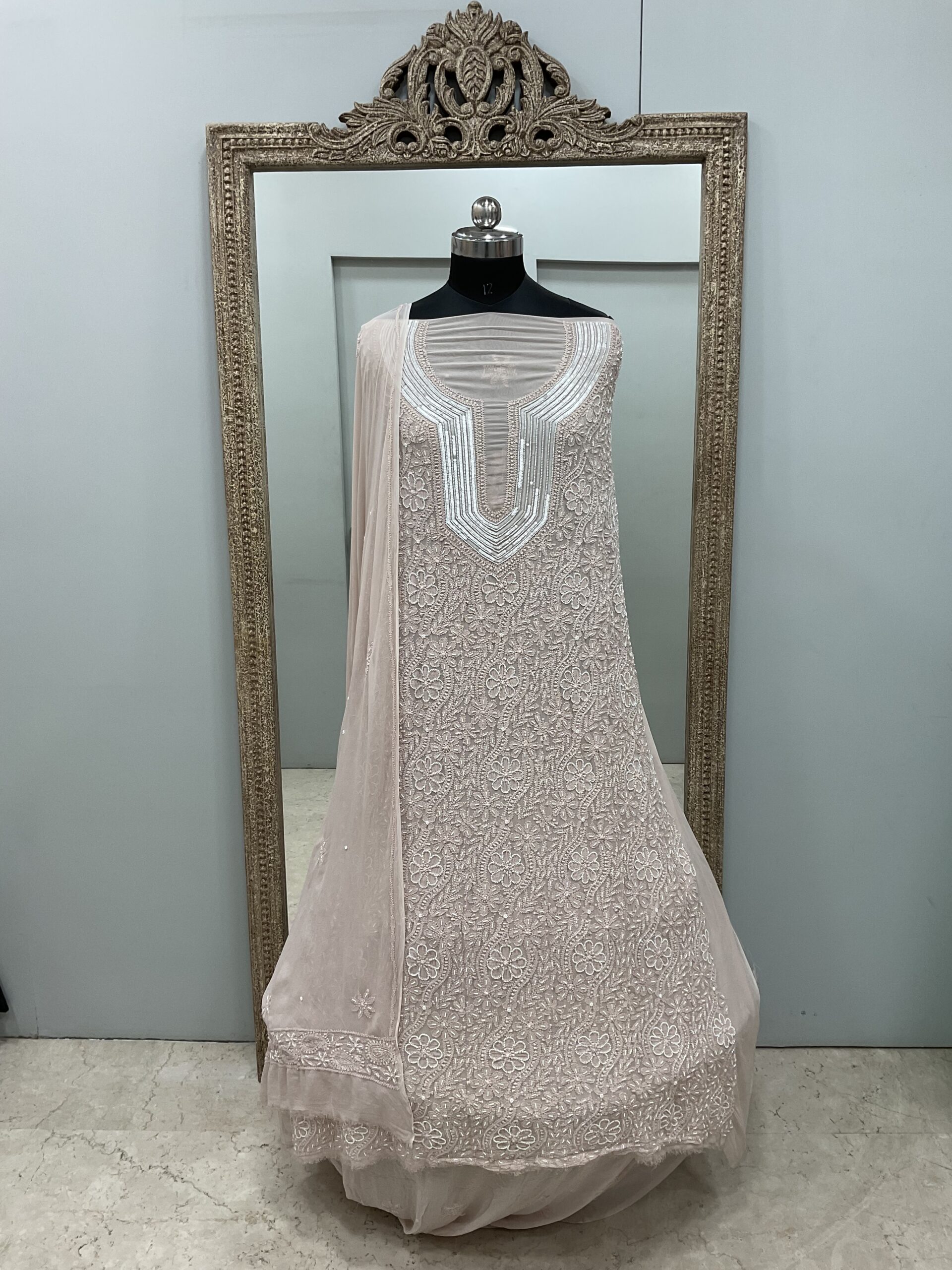 | Work | Pearl and Cutdana with Chickankari Embroidery |