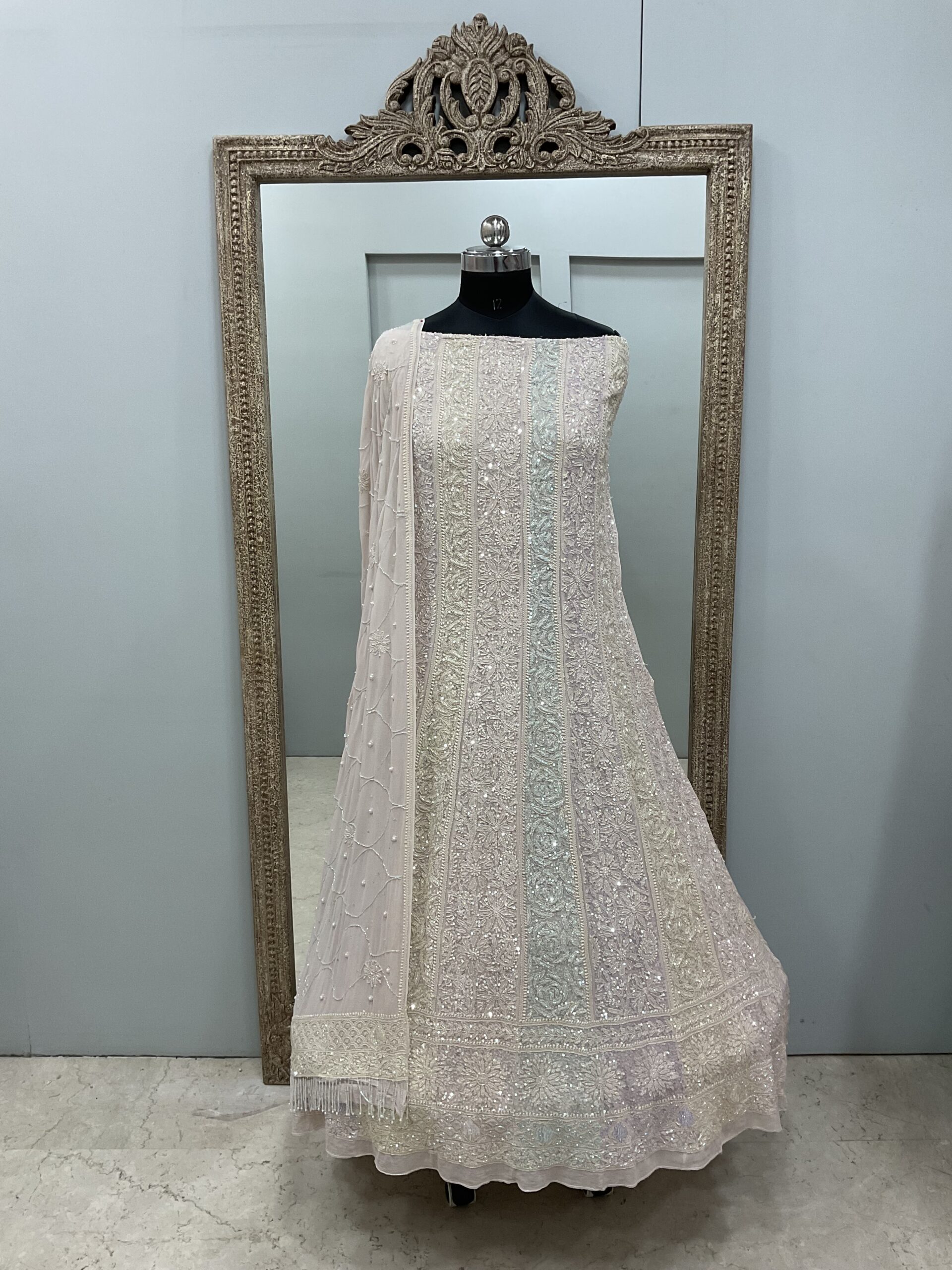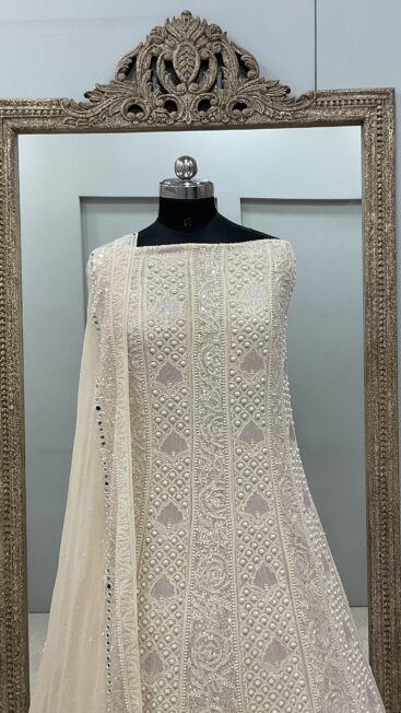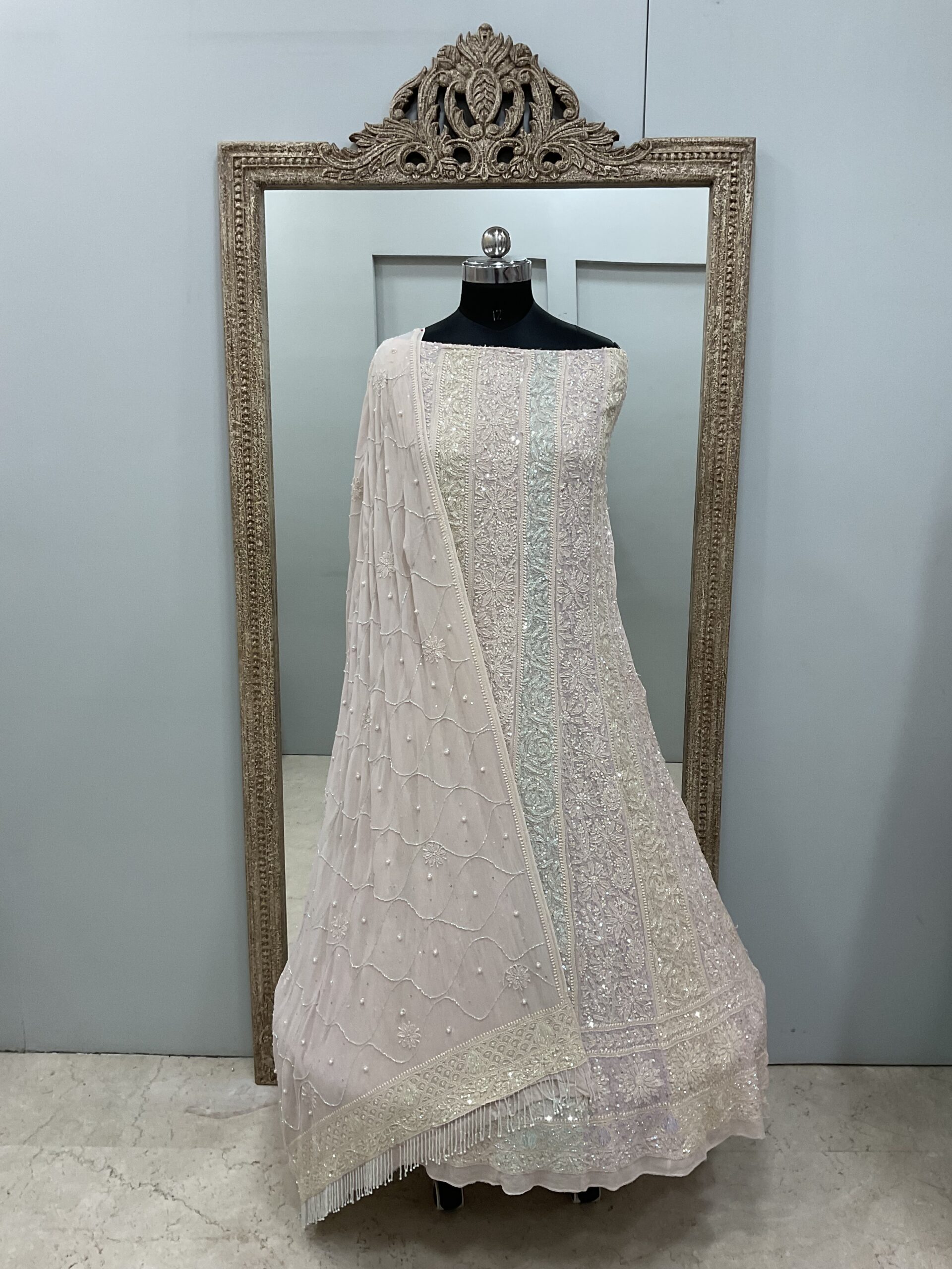 | Work | Pearl, Cutdana and Sequence with Chickankari Embroidery |