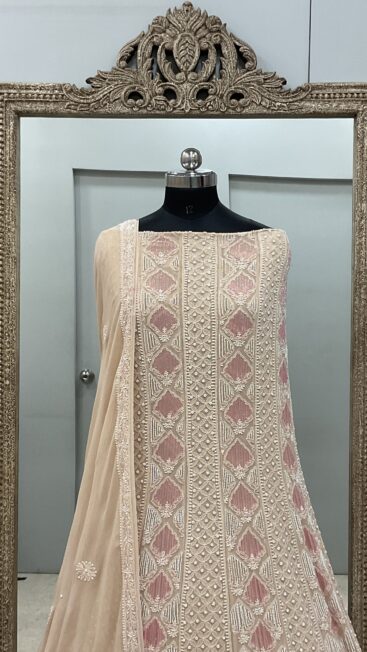 | Work | Pearl, Cutdana and Sequence with Chickankari Embroidery |