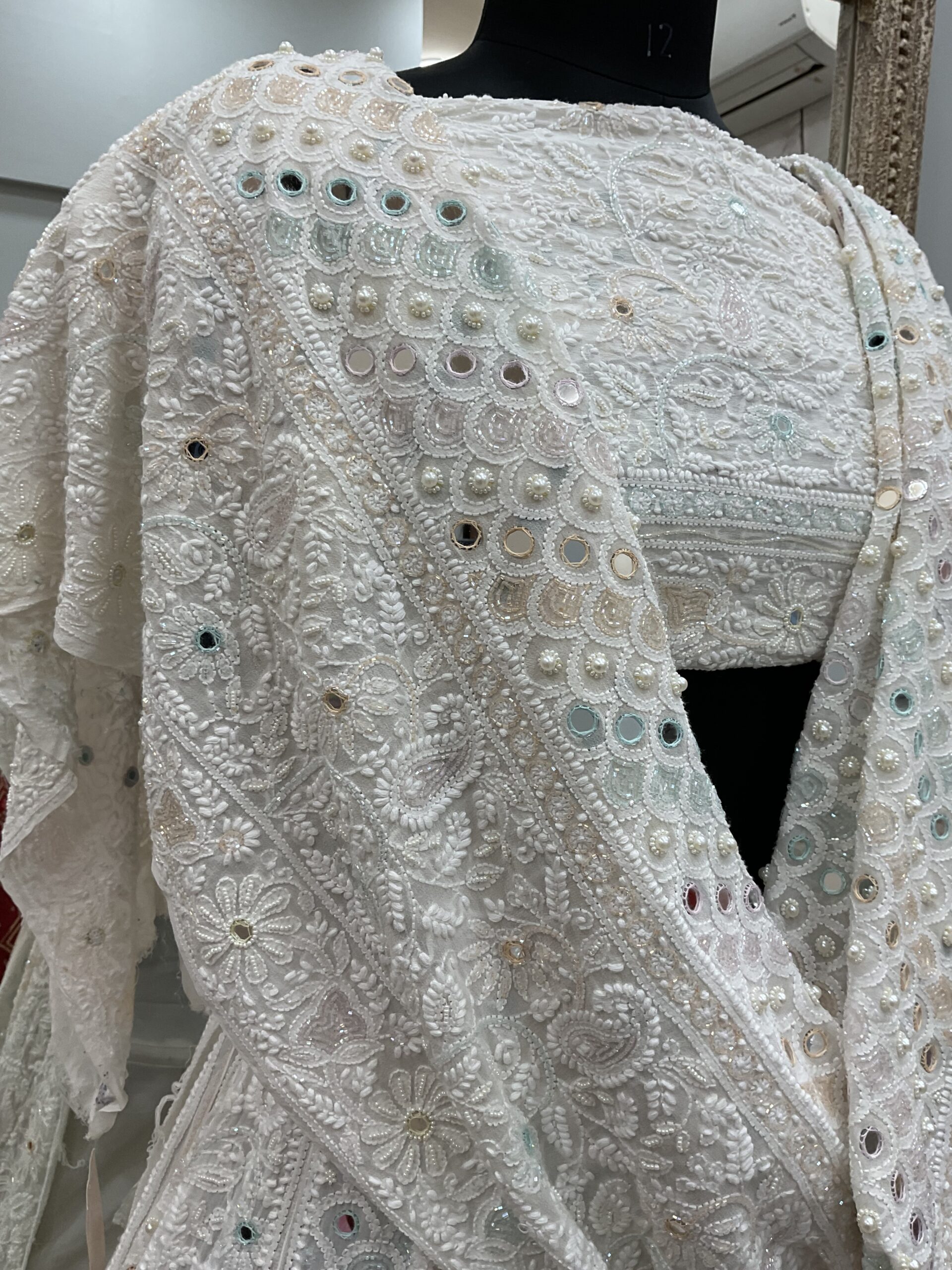 | Work | Multicolored Cutdana Pearl and Sequence with Chickankari Embroidery |