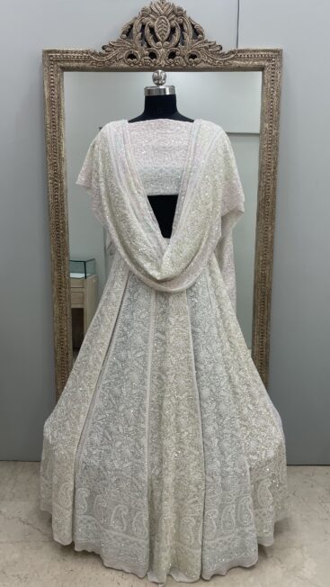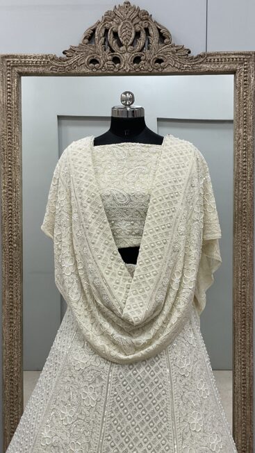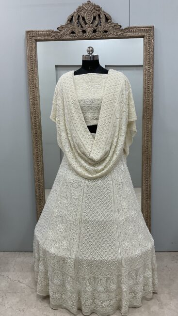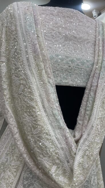 | Work | Heavy Pearl, Cutdana and Sequence with Chickankari Embroidery |