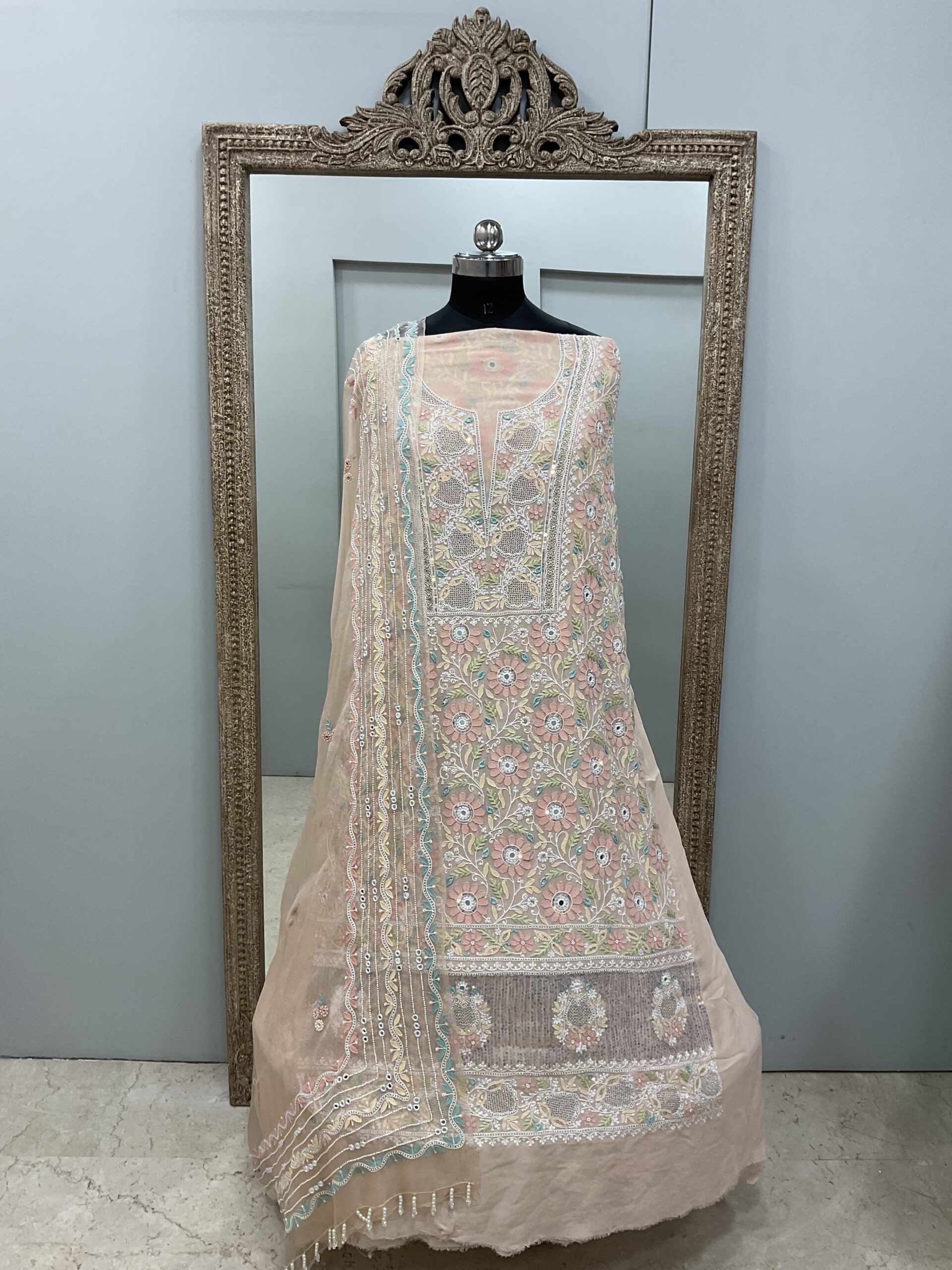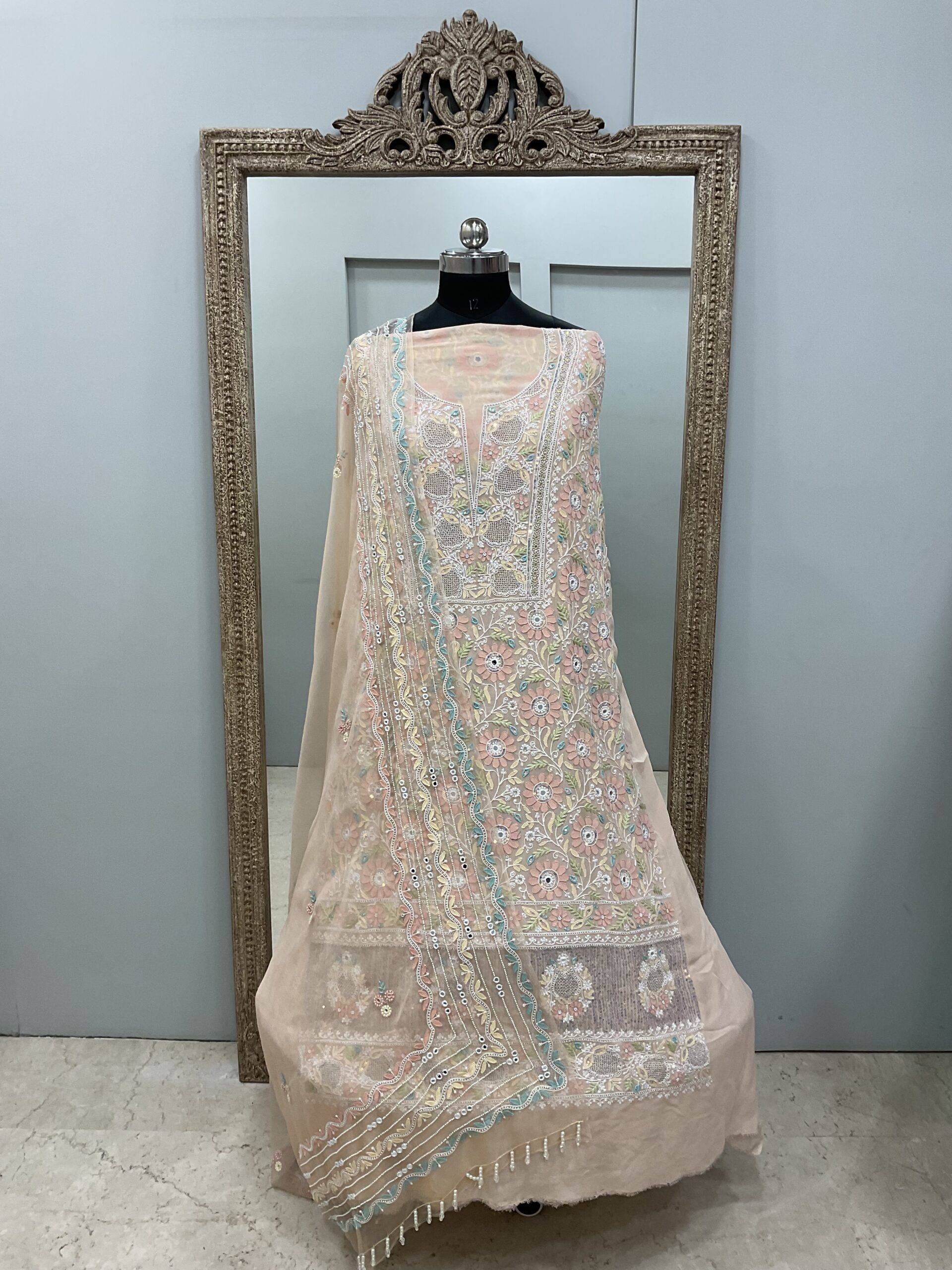 | Work | Pearl and Sequence with Chickankari Embroidery |