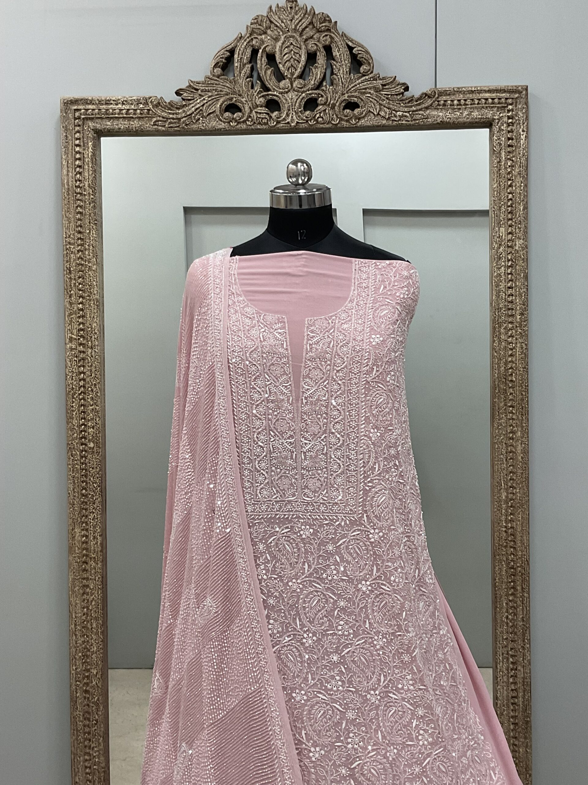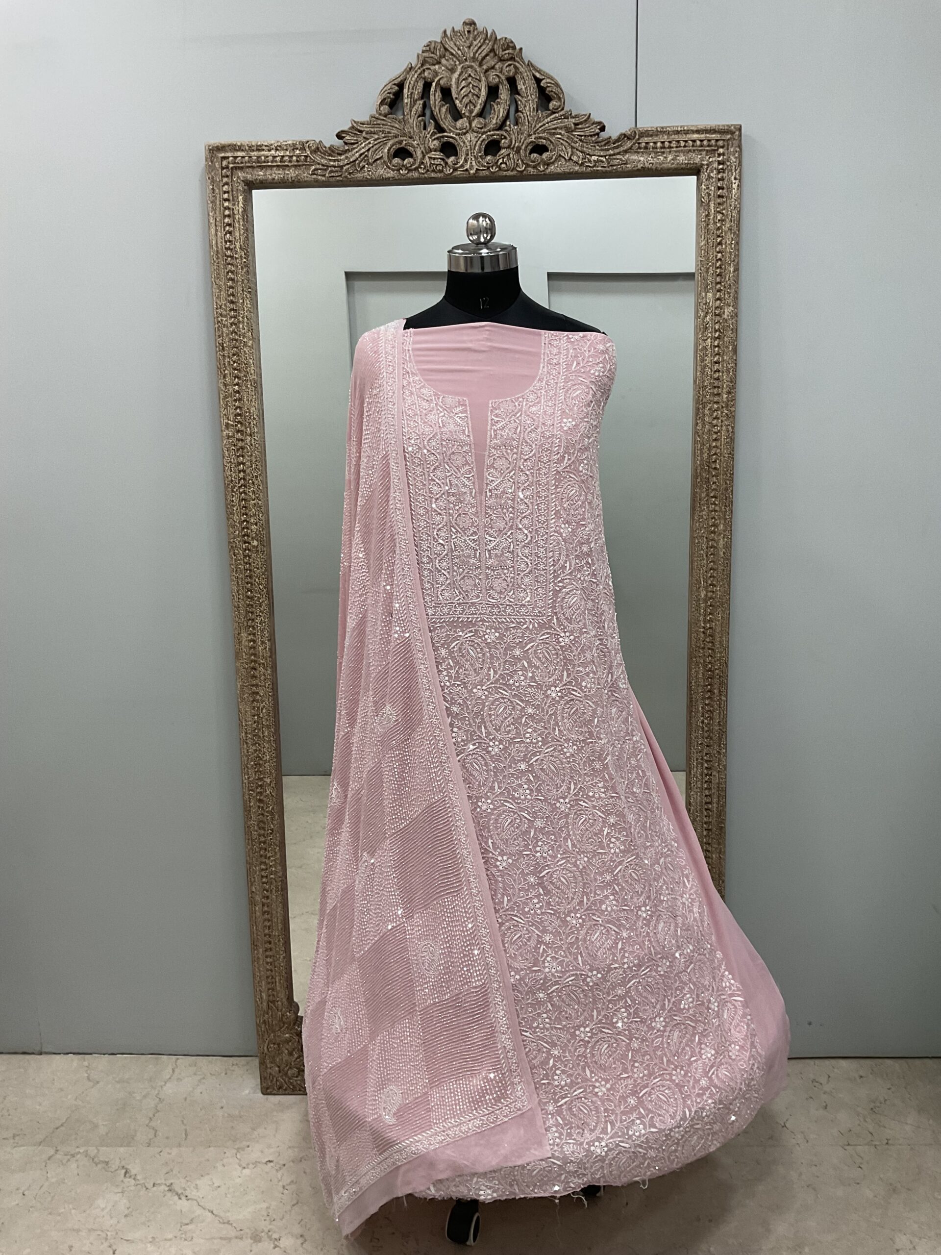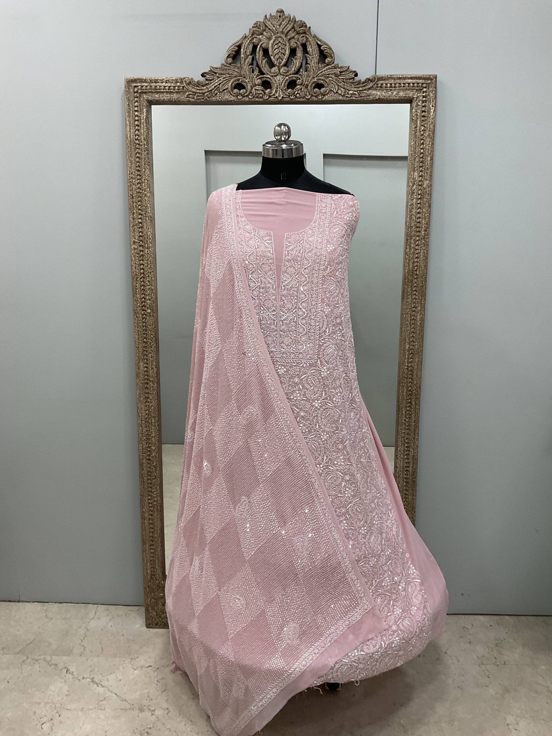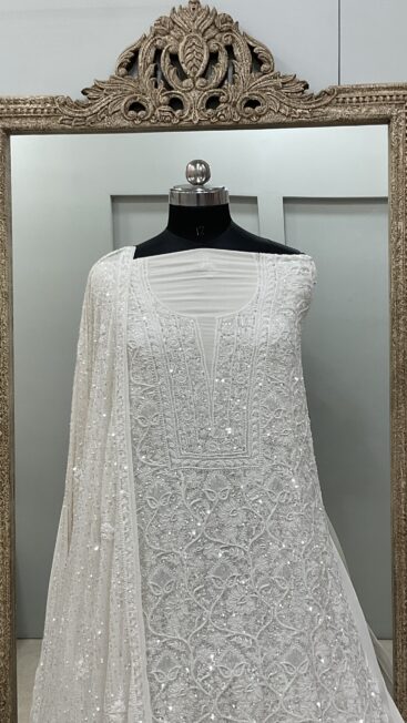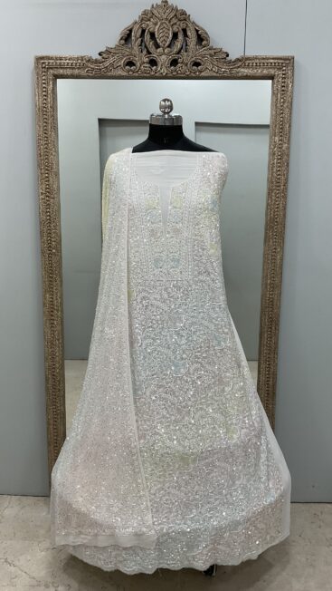 | Work | Pearl Cutdana and Sequence with Chickankari Embroidery |