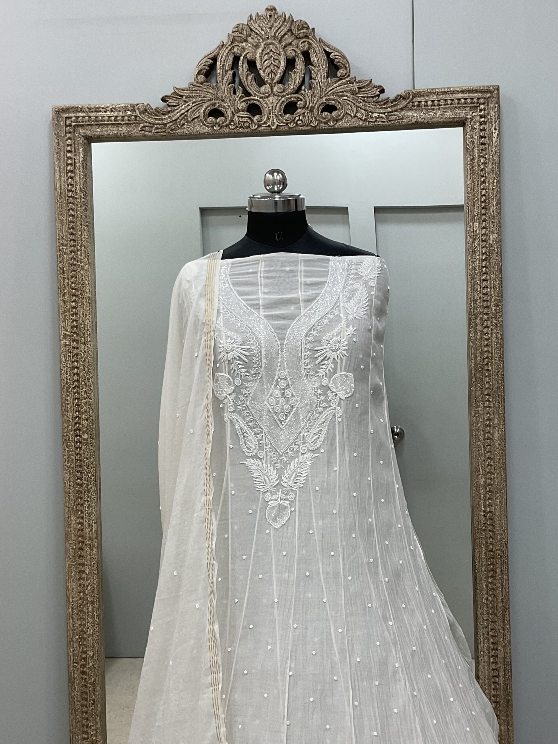| Work | Pearl And Cutdana Work With Chickankari Embroidery |