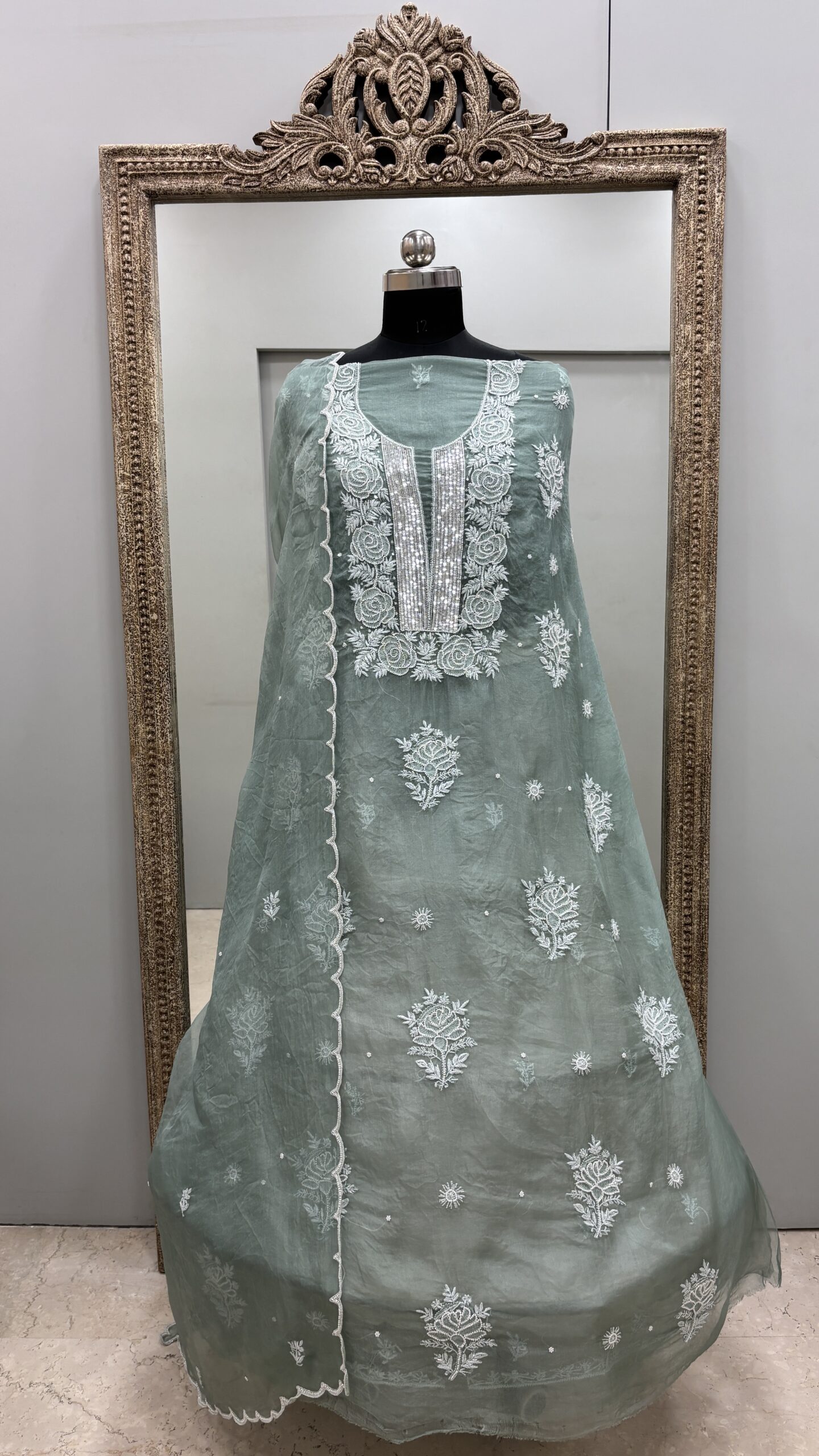 Work Pearl  Work with Chickankari Embroidery