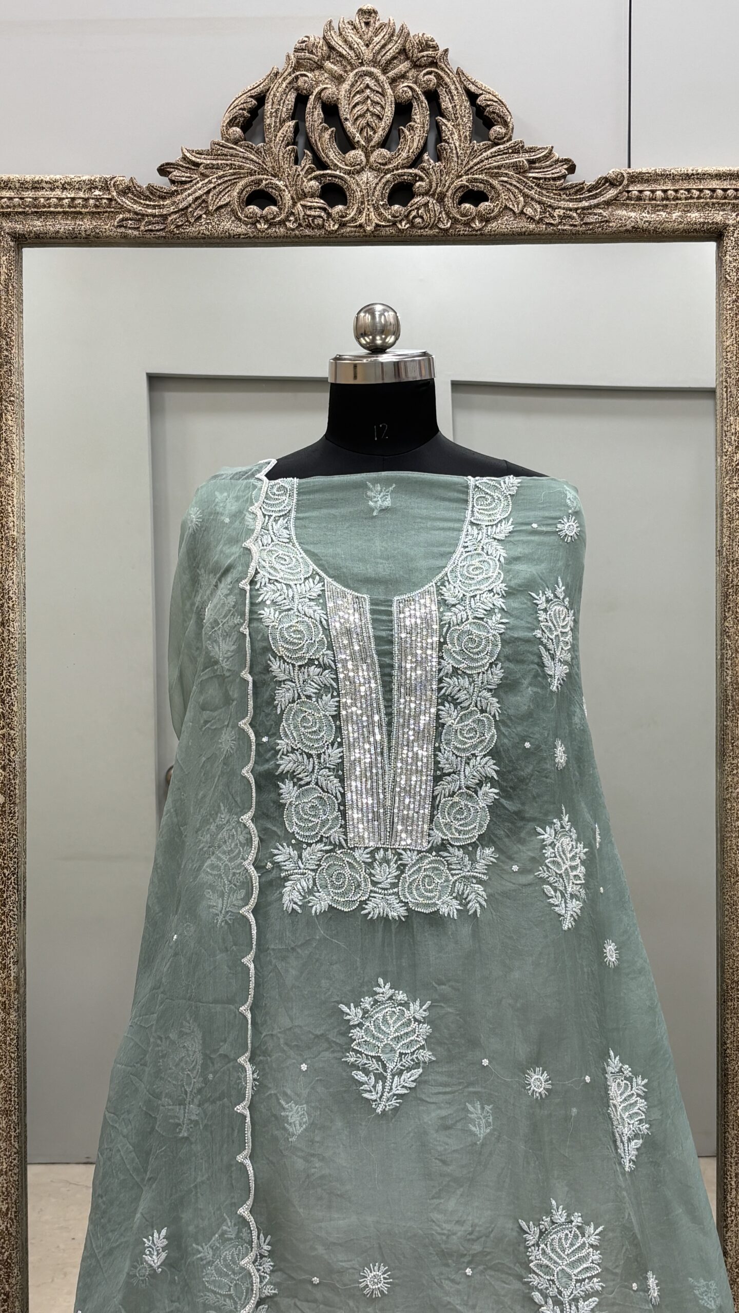 Be the first to review “Pure Organza Straight With Heavy Pearl And Addon Work Green”