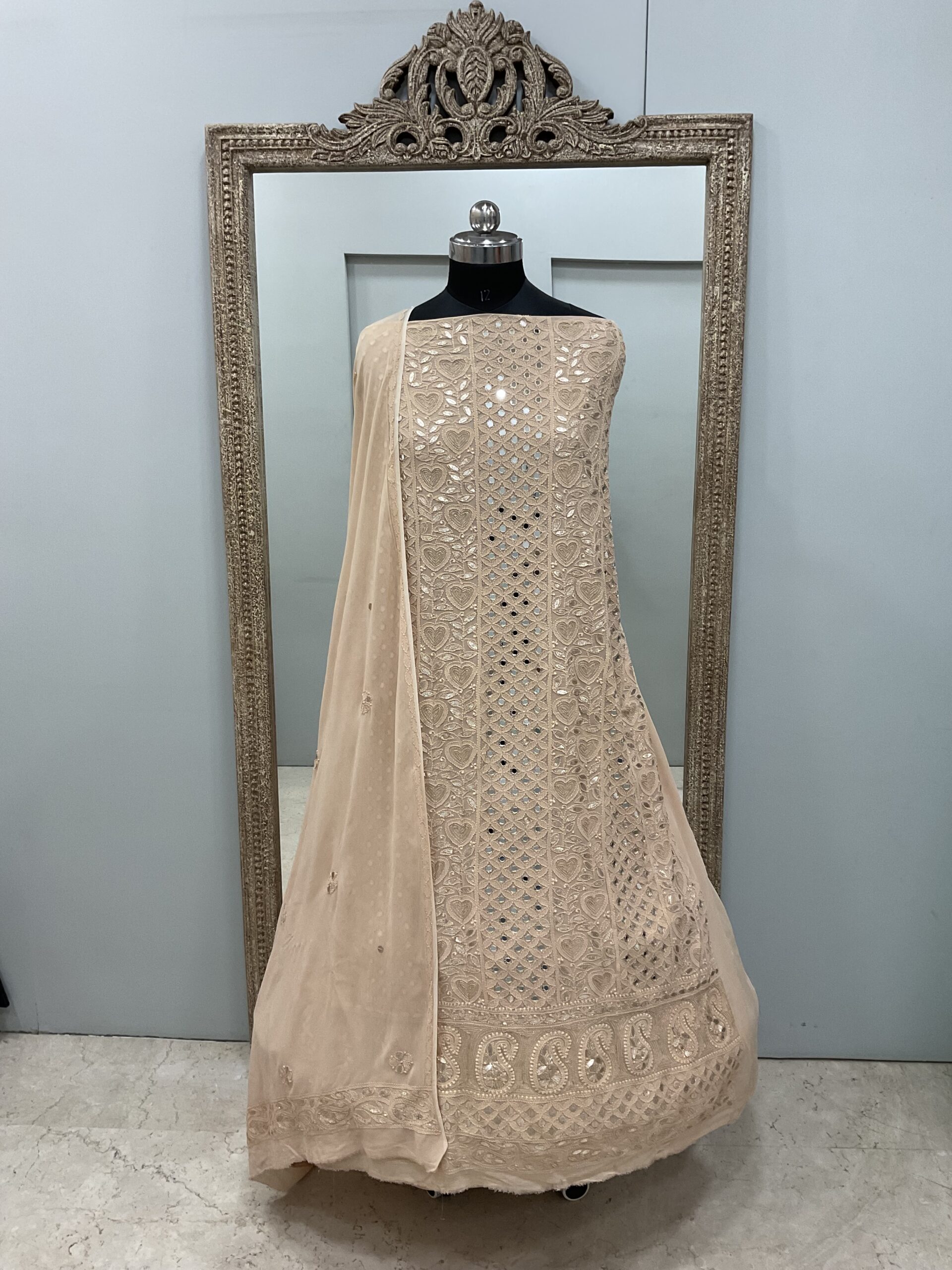 | Work | Real mirror and Gota with Chickankari Embroidery |