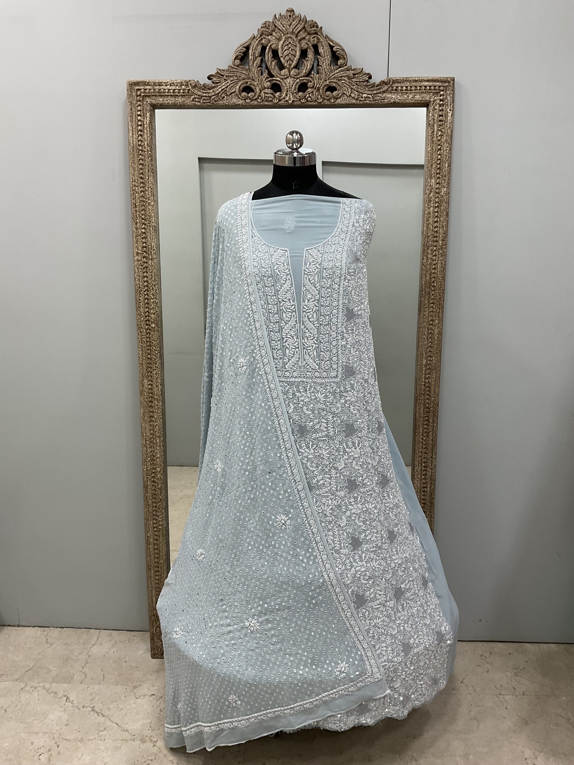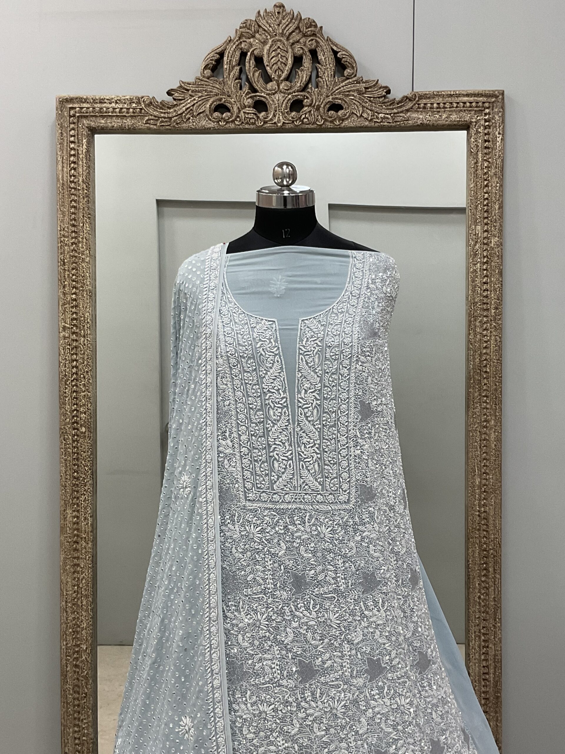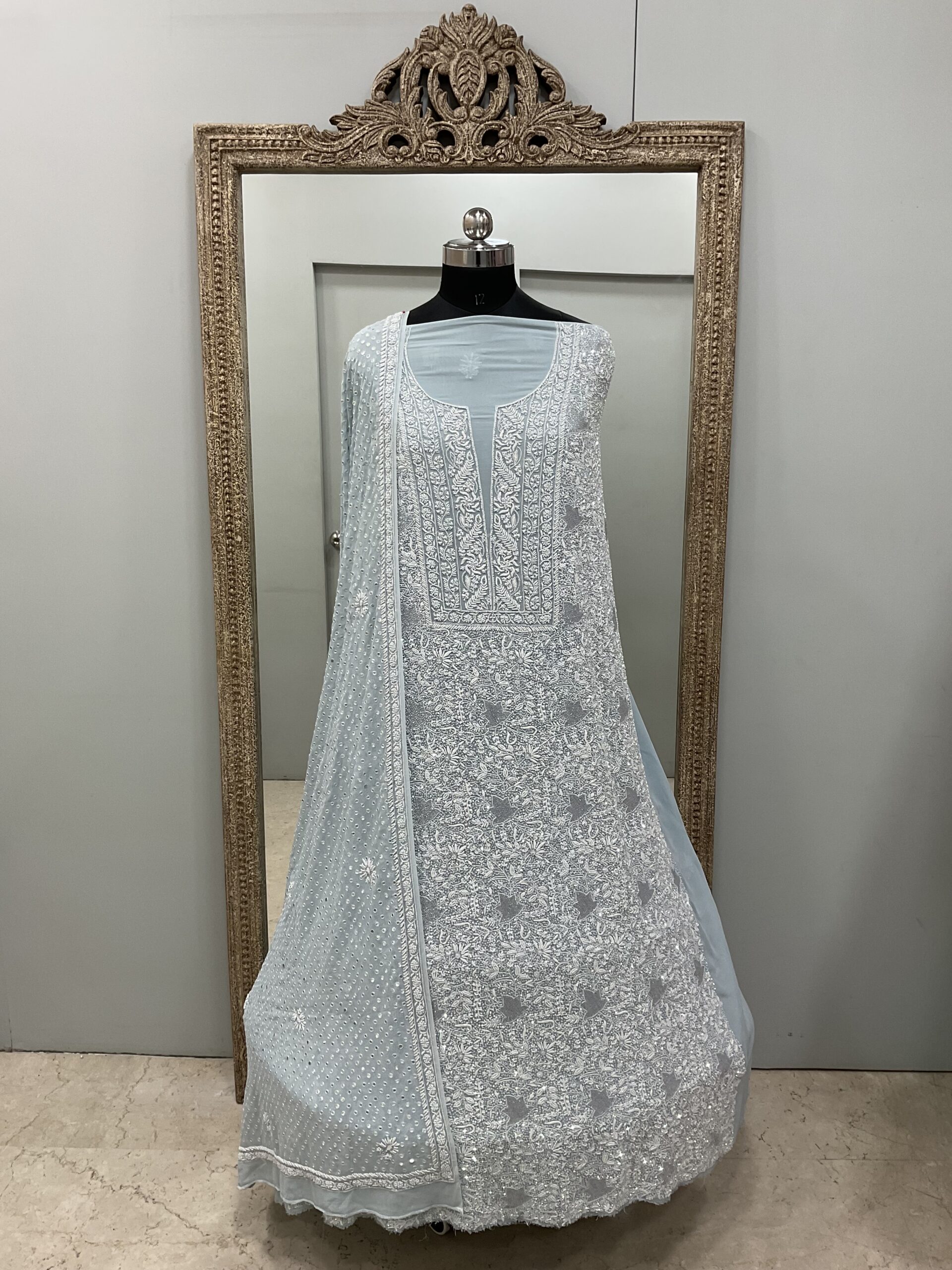 Work  Heavy Sequence and Pearl with Heavy Designer Dupatta and Chickankari Embroidery