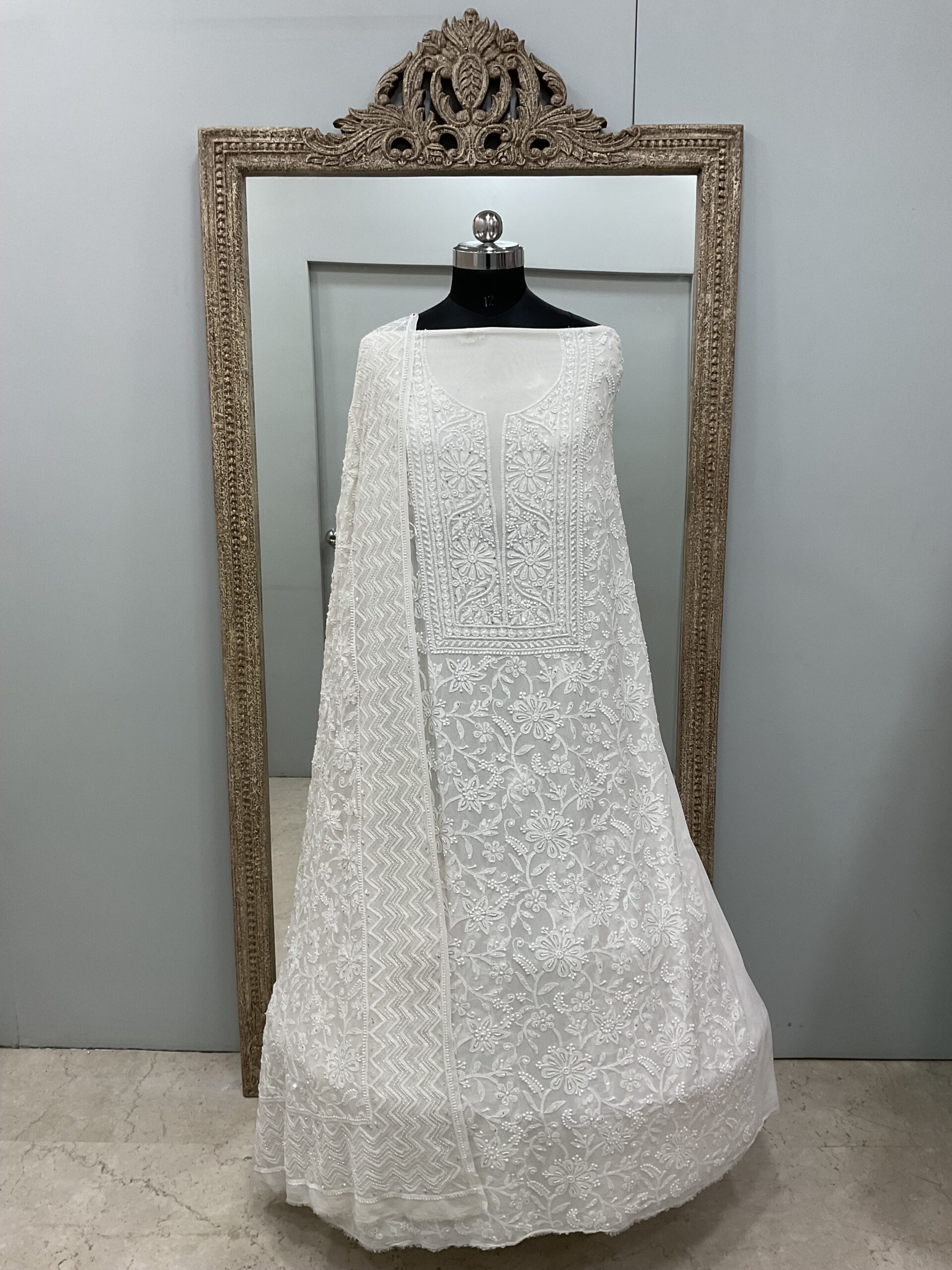 Work  Heavy Pearl Cutdana and Sequence Designer with Chickankari Embroidery